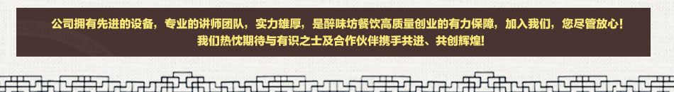 東莞市醉味坊餐飲管理有限公司是一家集食品研究與技術(shù)開發(fā)、鹵味技術(shù)開發(fā)、小本創(chuàng)業(yè)、開店指導(dǎo)、加盟、餐飲咨詢與餐飲業(yè)務(wù)策劃服務(wù)為一體的綜合性餐飲業(yè)服務(wù)公司 ,公司以“匯集天下名鹵,培訓(xùn)創(chuàng)業(yè)精英”為宗旨,本著“勇于進(jìn)取,勇于創(chuàng)新,追求卓越”的精神,以實(shí)現(xiàn)社會(huì)效益和經(jīng)濟(jì)效益并重;達(dá)到企業(yè)、員工、聯(lián)盟者三贏。