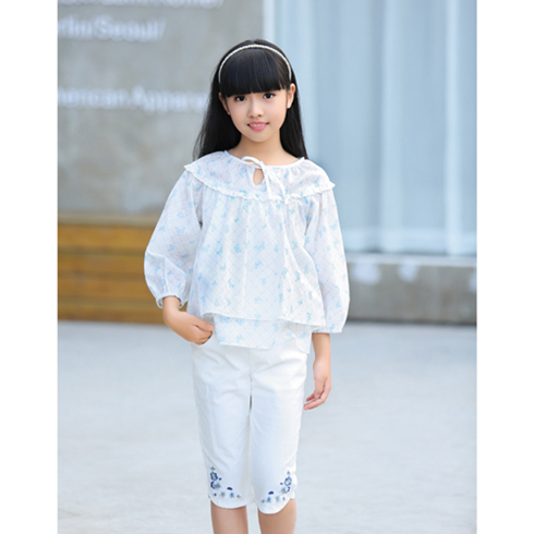 貝蕾爾童裝春夏甜美七分袖上衣領(lǐng)口處采用今年新的細(xì)帶設(shè)計,肩部位置添加褶皺花邊,清純可愛。貝蕾爾春夏甜美七分袖上衣整體輪廓為甜美娃娃裝,讓整件貝蕾爾春夏甜美七分袖上衣都充滿了甜美的氣息。輕薄的面料特別適合春夏氣溫下穿著。貝蕾爾春夏甜美七分袖上衣百搭的風(fēng)格無論是單穿還是搭配外套都一樣出彩。貝蕾爾春夏甜美七分袖上衣生產(chǎn)過程中經(jīng)過多次定型、印染、印花工藝考究,不易脫色變形,能使孩子穿上后感覺舒適、自然、安全。
