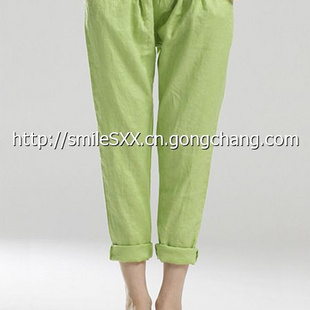 青島 愛尚衣物語 休閑文藝舒適抽繩亞麻哈倫褲 /