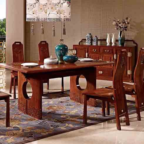 比如我們可以通過吊頂來進(jìn)行劃分,進(jìn)行地板來鋪設(shè)不同顏色,不同材質(zhì)或者不同高度的材料來進(jìn)行有效的劃分,這樣能夠在視覺上讓餐廳顯得獨(dú)立,同時(shí)又有效的融合在一起。除此之外,人們也可以通過不同的色彩,不同的燈光,或者通過一些透明的隔斷能夠分離出就餐區(qū),只要想得到的,人們都可以進(jìn)行嘗試,獨(dú)立而又整合,是餐廳的裝修要點(diǎn)。因此瀚晟堂新中式紅木家具為了能營造一個(gè)古樸、高雅的餐廳環(huán)境,推出了這款晟福云海餐廳的紅木家具,以現(xiàn)代人的審美需求來打造富有傳統(tǒng)韻味的事物,讓傳統(tǒng)藝術(shù)在每一個(gè)家庭中都能得到合適的體現(xiàn)。