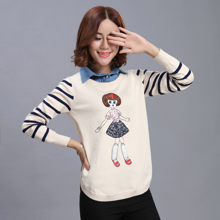 新款2015冬季女士針織衫批發(fā) 時尚潮流休閑圓領(lǐng)套頭卡通修身上衣 /