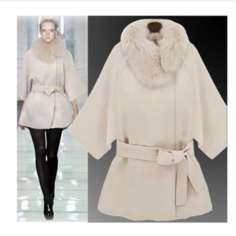 2015 秋冬新款大碼女裝貉子毛毛領(lǐng)斗篷羊絨毛呢外套呢子大衣 /