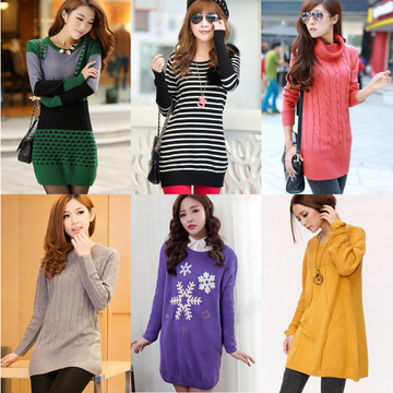 2015夜市擺攤地?cái)偀豳u毛衣貨源秋冬韓版套頭v中長(zhǎng)款針織衫毛衣女 /