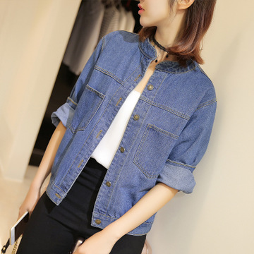 牛仔外套女2016春裝新款韓版立領(lǐng)長袖寬松牛仔衣夾克外套 /