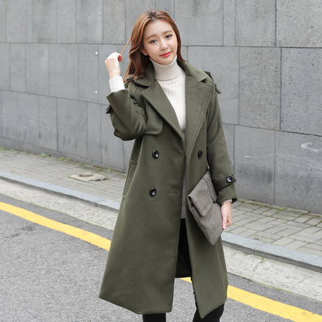 冬季長袖中長款修身西裝領(lǐng)雙排扣毛呢外套 /