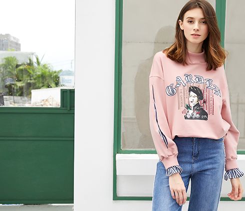 金蝶茜妮-粉色印花長袖衛(wèi)衣