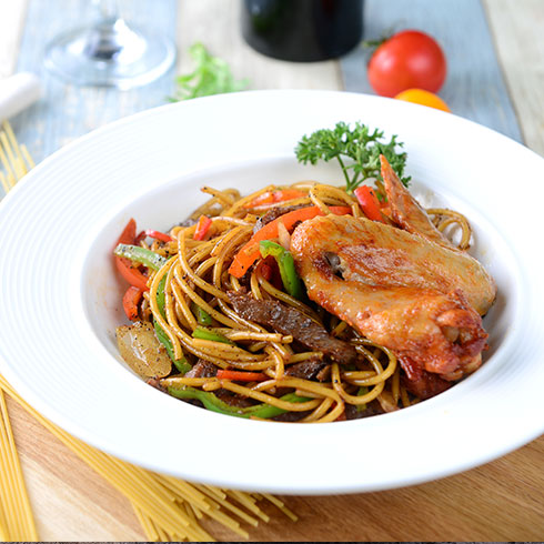 圖上所展示的是索菲克家庭牛排館推出的奧爾良牛排雞翅意面。牛排肉質(zhì)鮮嫩,口感柔嫩,鮮美有彈性,奧爾浪烤雞翅,香辣可口,雞肉細(xì)膩,香嫩多汁,意面,絲滑Q彈,勁道爽口。精選材料到嚴(yán)格工藝,都體現(xiàn)了意面的最好風(fēng)味。選用肉質(zhì)最鮮嫩的雞翅中為主原料,烤雞料是一種適用雞肉的腌制料。索菲克家庭牛排館加盟首選項目。