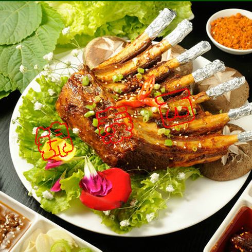 烤功夫一品羊排精選草原乳羊,此羊常年吃高山青草無污染,其做法是:將羊排每根砍成5厘米長的段,用香蔥、姜、精鹽、味精、料酒腌制2小時。將腌制好的羊排加入雞蛋、花生醬、吉士粉、辣妹子辣椒醬、干淀粉拌好待用。凈鍋置旺火上,倒入植物油,燒至六成熱,下入腌制好的羊排浸炸15分鐘,至表面呈金黃色時,撈出瀝凈油。鍋內(nèi)留底油,再放入姜、蒜末、紅椒米炒香,倒入炸好的扎好的羊排翻炒幾下下,淋香油,出鍋整齊地擺入碟內(nèi)即可。還有一種做法就是將精選的羊排剁成段,再用藥材淹制,然后上烤箱,文火烤制四十多分鐘即可食用。兩種做法做出的羊排都是干香、味濃、孜然味突出。