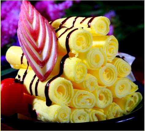 軟質(zhì)冰淇淋在快樂卷冰淇淋機的大理石臺面匯聚時,奇跡誕生了——薄薄的攤開,嫻熟翻烙,在卷成筒狀置于夢幻般的蛋筒中,冰凍與熱烈的感覺便情綣綣的涌上心頭,味道high極了!