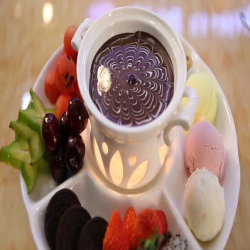 接著顧客可把水果、小點(diǎn)心也陸續(xù)放到火鍋里這么一涮,一個(gè)個(gè)都成了各種風(fēng)味不同的“巧克力葫蘆”了。每一種都各是各的口味,一涼一熱,美妙極了。如果你也是位美食家,不妨也去品嘗一下這種冰淇淋的新吃法。