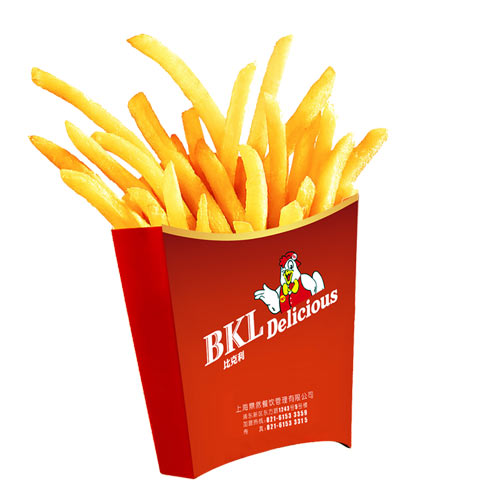 比克利薯條,精選上等進口馬鈴薯,大小勻稱經(jīng)過專業(yè)檢測,安全可靠營養(yǎng)成分充足。比克利薯條,外脆內(nèi)松軟,金黃色的外表吸引力十足!采用一等新鮮油炸,專人控制油溫,嚴格監(jiān)控達到最健康水平。你是否經(jīng)??鄲烙谏聿牟粔蛎鐥l?你是否苦惱于快餐食品不夠健康?你是否早已厭倦千篇一律、隨處可見的油炸快餐?比克利薯條給你健康美味新享受。