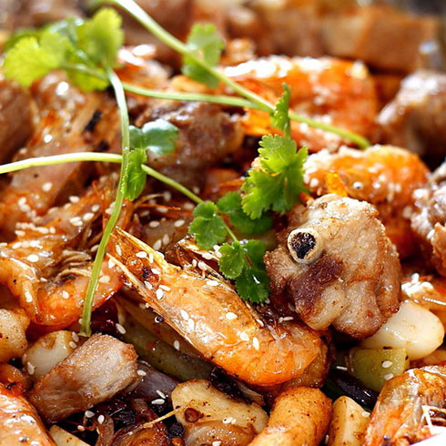 這道香辣蝦的悶鍋,看起來質(zhì)量上乘,雞翅金黃并且?guī)е鉂桑雌饋硗馑掷锬?,同時香辣蝦在下部帶出了充分的鮮味。蝦本身的味道是就是很不錯的。