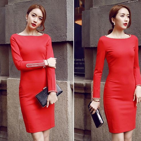Qanzhui女裝-紅色OL裝