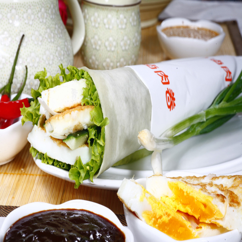 簡介:火腿雞蛋卷:滋美火腿雞蛋卷,營養(yǎng)美味的經(jīng)典之作,源于農(nóng)家土雞蛋的健康營養(yǎng),加上美味的火腿,吃一口就足以讓人心曠神怡。不管是作為正餐,或者是用來作為休閑小吃,滋美火腿雞蛋卷都是一個非常不錯的選擇。滋美火腿雞蛋卷,“勻平霜雪白,燙貼火爐紅,薄本栽圓月,柔還卷細(xì)筒”。滋美火腿雞蛋卷原方餅皮,采用獨(dú)創(chuàng)高筋小麥粉配方,獨(dú)家烙制工藝,火候均勻,不糊不焦。滋美火腿雞蛋卷成品餅皮,“手搟水筋頭,一攥彈三彈”,嫩白、薄亮、清透,口感筋道柔嫩,天然麥香清甜回味。完美包裹滋美絕妙美味,大小適中,恰恰切口,口感更是渾然天成。