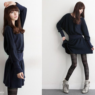 廠家直銷女裝免費代理淘寶專供1868 韓版收腰顯瘦針織長袖連衣裙 /