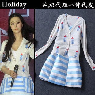 歐洲站2014秋冬新款女裝范冰冰休閑雪糕連衣裙兩件套女裝代發(fā) /