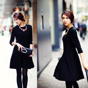 新款高檔赫本小黑裙大碼女裝百褶裙大擺連衣裙a字裙廠家直銷 /