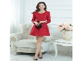 2014秋裝新款韓版方領(lǐng)長袖大碼連衣裙修身顯瘦收腰毛呢連衣裙潮 /