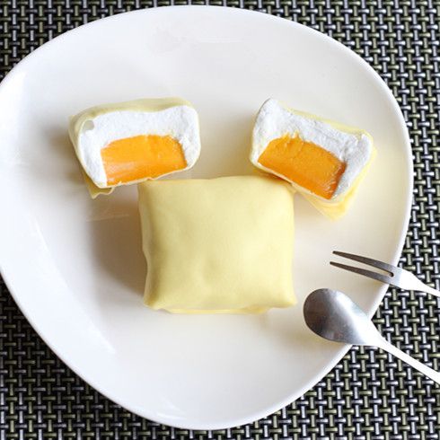 班戟是西方人很喜歡的甜品,但經(jīng)過(guò)香港人的打磨,已經(jīng)變成港式甜品的經(jīng)典之一。現(xiàn)在無(wú)需去香港,在Q果凍屋就能吃到地道的芒果班戟。在Q果凍屋的芒果班戟是先把雞蛋、糖粉、室溫牛奶和鮮橙汁攪拌均勻,篩入低筋面粉,用刮刀把低筋面粉與蛋奶漿拌均勻,加入溶化的黃油與蛋奶漿攪拌均勻,放入冰箱冷藏30分鐘,再用一個(gè)不粘平底鍋稍微加熱,用湯勺舀入一湯勺的面糊小火煎至面糊凝固即可取出,最后面皮煎好了放一邊等待冷卻,芒果切成條狀,淡奶油打發(fā)好后,取一片面皮將煎過(guò)的一面放入少許淡奶油,放入切好的芒果條在芒果條上面再放入一層淡奶油,包好后收口朝下,放入冰箱冷藏,冷卻后的芒果班戟口感更美味,因此受到了廣大消費(fèi)者的喜愛。