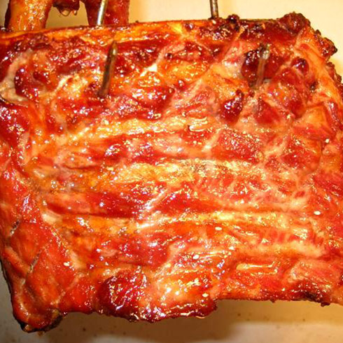 簡介: 叉燒是中國廣東燒味的一種,將豬肉以叉子放在火上燒熟而成,故名。燒烤叉燒時會在表面涂上紅色的叉燒醬,故此叉燒是紅色的。“叉燒”是從“插燒”發(fā)展而來的,插燒是將豬的里脊肉加插在烤全豬腹內(nèi),經(jīng)燒烤而成。