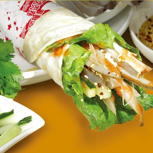 圖片中向人們展示的是由瘋卷鹵肉卷推出的一款創(chuàng)意人氣美食——脆甜鹵藕卷。這款美食創(chuàng)造性的將藕、黃瓜、生菜等食物結(jié)合起來做成食物,塑造出意想不到的化學(xué)反應(yīng),口感極佳,帶給消費(fèi)者味覺上的極致享受。另外,這款美食富含多種營(yíng)養(yǎng)成分,具有清熱利水,生津止渴,滋補(bǔ)養(yǎng)性的功效,可謂功能強(qiáng)大。
