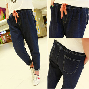 2014韓版胖mm 大碼女裝加肥加大牛仔褲黃繩子 42038 /