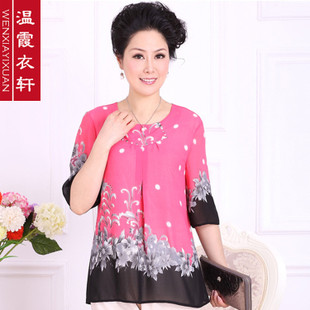 溫霞衣軒 中老年女裝短袖雪紡T恤 媽媽裝夏季新款中老年女裝新款 /