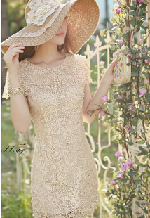 批發(fā)價(jià) 2014新款 菁菁手工釘珠 重工訂制款鏤空刺繡花朵連衣裙 /