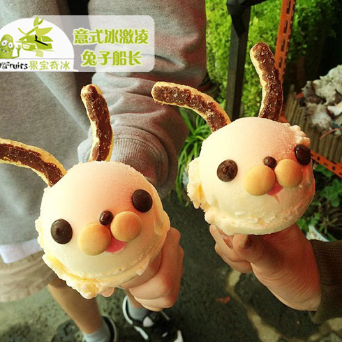 圖片上展示的是果寶奇兵飲品的意式冰淇淋系列——兔子船長。它的造型不僅又把我們拉回到甜馨的小兔子,還把美味的口感創(chuàng)造了出來。冰淇淋是一種極具誘惑力的美味冷凍奶制品。而意式冰淇淋則不僅專注于口味,還注重外表,其賦予了冰淇淋奇特的造型,給冰淇淋裝點了一個童話般的夢幻,而在細細咀嚼冰淇淋店同時,你在腦海中還能構(gòu)思一個娓娓道來的故事。