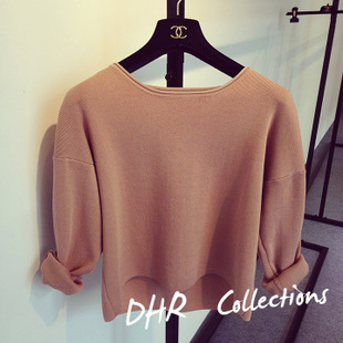 2014爆款秋裝新款馬卡龍色百搭罩衫 經(jīng)典圓領(lǐng)寬松針織衫打底衫女 /