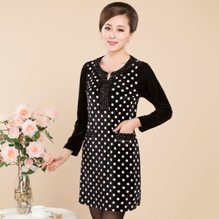 中老年連衣裙2015春季新款大碼修身連衣裙長袖絲絨媽媽裝 /