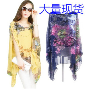 2015夏胖MM大碼套頭印花不規(guī)則寬松蝙蝠袖雪紡衫短袖T恤女 /