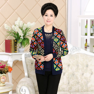 春秋裝中老年女裝T恤 時尚中年媽媽裝假兩件女批發(fā) /