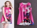 歐洲站 2015春夏新款歐美時(shí)尚女裝 桃花印花無袖修身連衣裙 批發(fā) /