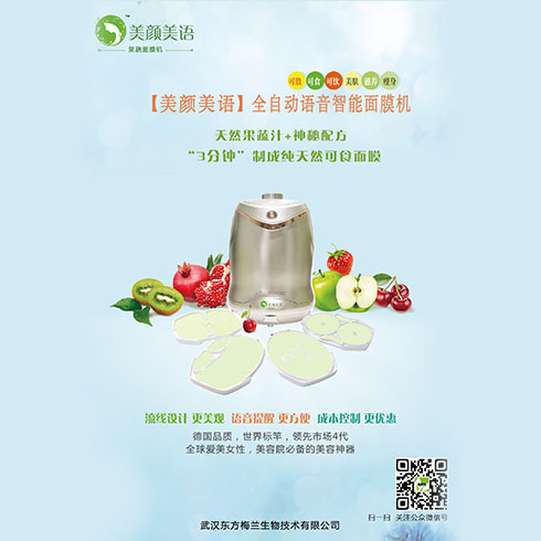 簡介:美顏美語面膜機-美顏美語產品名稱:美顏美語面膜機圖片上展示的是美顏美語面膜機。美顏美語面膜機它以眾多新鮮蔬果為原料,現(xiàn)做現(xiàn)用,不需要添加任何化學成分,在不同時期、不同季節(jié)都有最適合你皮膚的配方。加水、加料、啟動、清潔、關機,五大程序,美顏美語面膜機一鍵全自動完成。制作過程如突然斷電,在2分鐘之內接通電源將延續(xù)斷電前的記憶,運行未完的工作。從天然原材料到聚合制模,再到制模盤彈出只需幾分鐘即可完成。貴族品質,卻有平民價格。