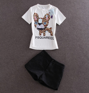 歐洲站2015夏裝新款動物圖圓領(lǐng)短袖T恤+短褲休閑套裝 /