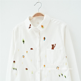高品質(zhì)秋冬新款加厚牛津紡卡通刺繡襯衣森女秋冬白襯衫女初語同款 /