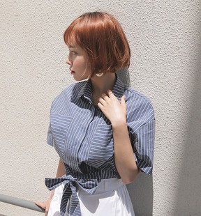 2015夏季新款韓國stylenanda 條紋蝴蝶結(jié)短款襯衫N99 /
