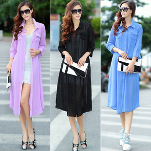 2014大牌氣質(zhì)長款防曬衫雪紡襯衫防曬衣開衫雪紡襯衣雪紡衫 /