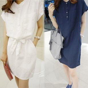韓國(guó)東大門2015夏季新款女裝 大碼修身短袖棉麻連衣裙打底裙批發(fā) /