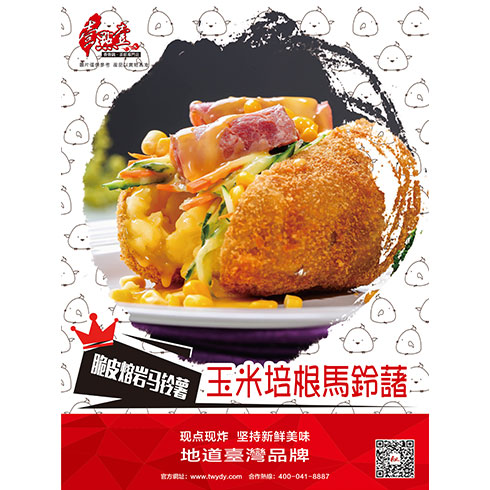 簡介:壹點壹茶飲飲品小吃-玉米培根馬鈴薯產(chǎn)品名稱:壹點壹茶飲飲品小吃圖片上展示的是壹點壹茶飲飲品小吃的玉米培根馬鈴薯。其是使用玉米和培根與馬鈴薯的完美結(jié)合制成,壹點壹茶飲飲品小吃選用優(yōu)質(zhì)玉米,運用其極高的營養(yǎng)價值打造健康的美食。每百克玉米的脂肪含量是3-4克,為精米白面的36倍。極高的能量補給。另外食材運用馬鈴薯,其可作主食食用,其中含有豐富的維生素及鈣、鉀等微量元素,且易于消化吸收,營養(yǎng)豐富。能供給人體大量的熱能。兩者與培根搭配營養(yǎng)更加豐富,充分補足人體所需的各種營養(yǎng)成分,口感綿滑細膩。