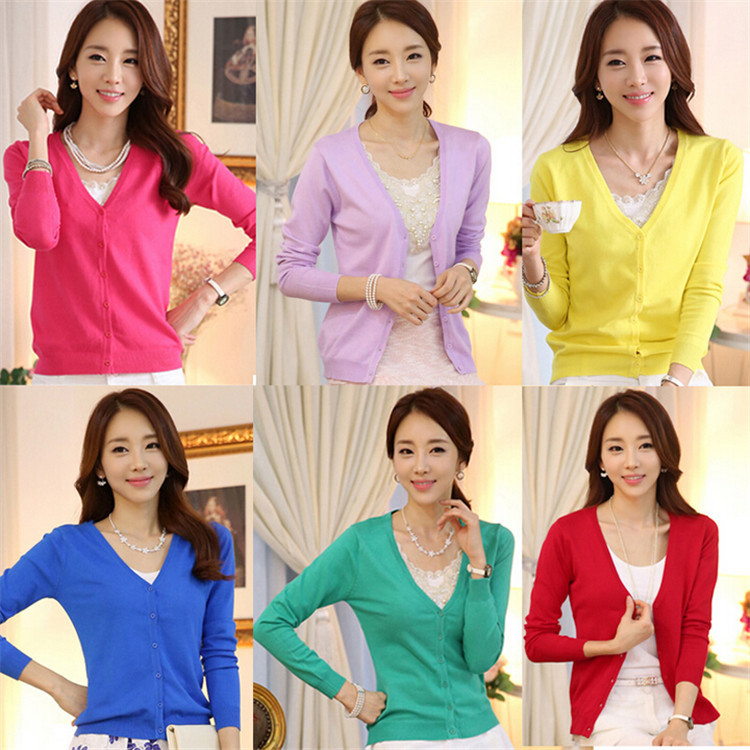 毛衣女2015秋冬新款韓模純色開衫針織衫批發(fā)棉毛線長(zhǎng)袖女裝外套 /
