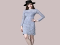 歐美2015秋冬季新款女裝圓領(lǐng)長袖修身蕾絲連衣裙 /