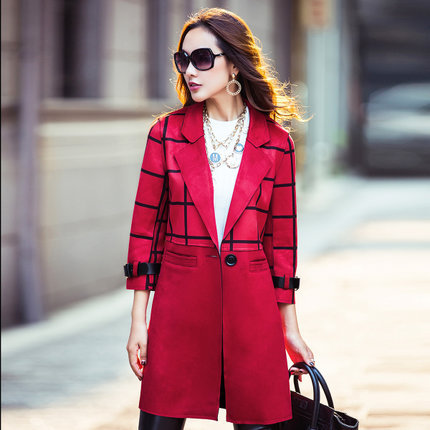 歐洲站2015秋季新款中長款鹿皮絨風衣時尚修身女士風衣外套女批發(fā) /