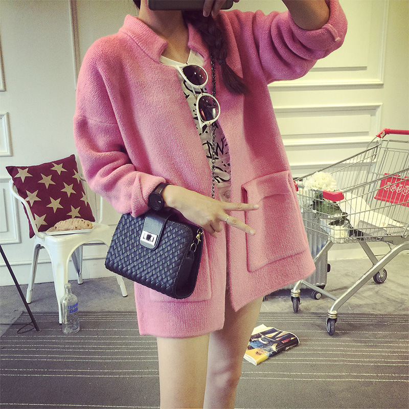 2015外搭厚款冬外套女款毛衣開衫學(xué)生韓版長袖中長款針織衫女士 /
