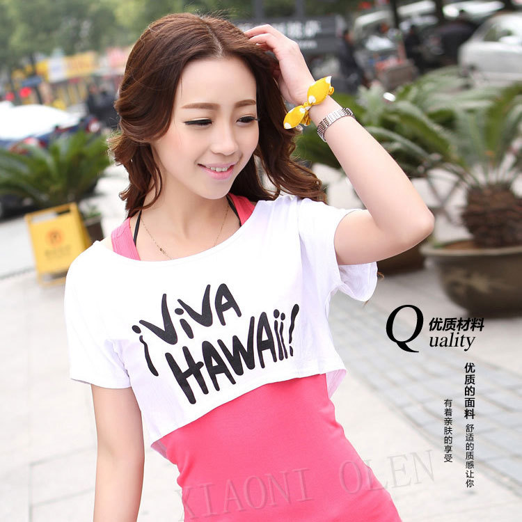 廠家女裝 韓版套頭皇冠莫代爾寬松罩衫 短袖百搭超短T恤 淘寶爆款 /