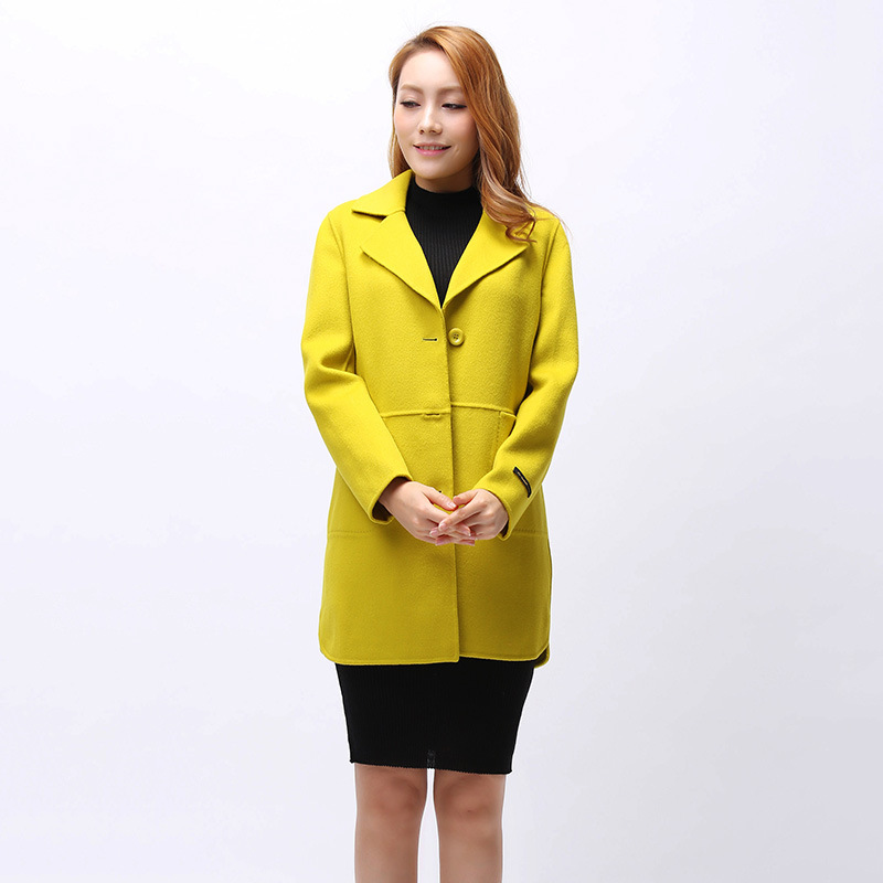 批發(fā)2015秋季新款時尚舒適保暖中長款大衣 翻領(lǐng)雙面羊毛女式外套 /