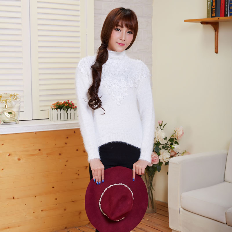 毛衣女套頭半高領(lǐng)針織衫秋冬長袖純色韓版中領(lǐng)顯瘦學(xué)生立體花朵潮 /