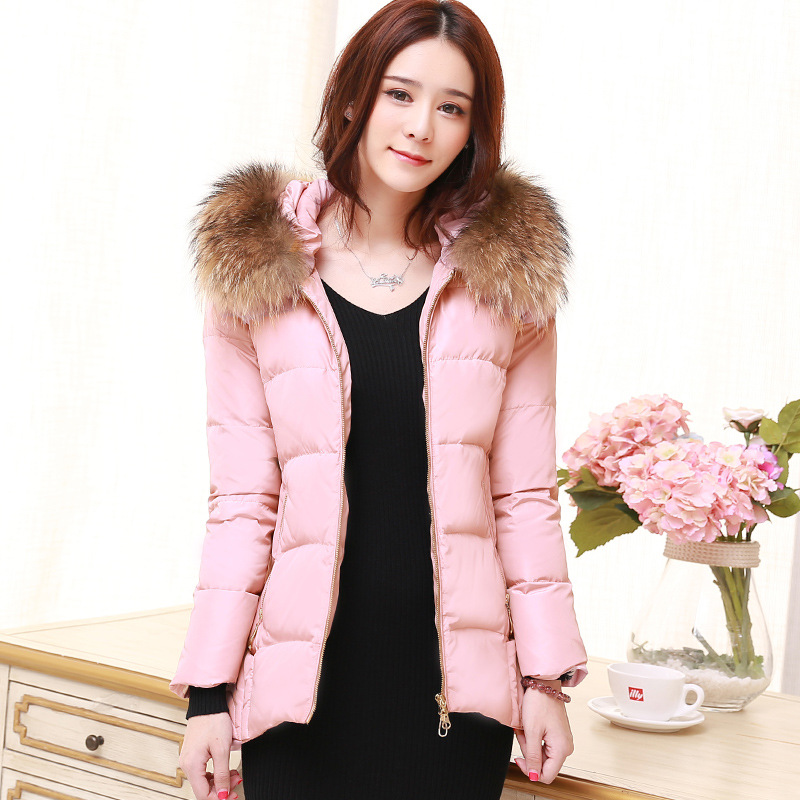 2015冬季新品女裝韓版時尚潮流中長款加厚白鴨絨帶帽羽絨服女外套 /