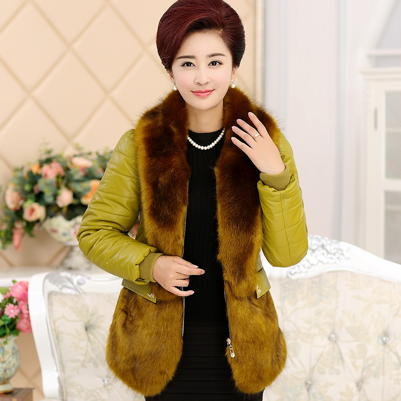 中老年女裝皮衣新款中年媽媽裝高檔PU皮仿狐貍毛領(lǐng)棉服冬裝上衣女 /